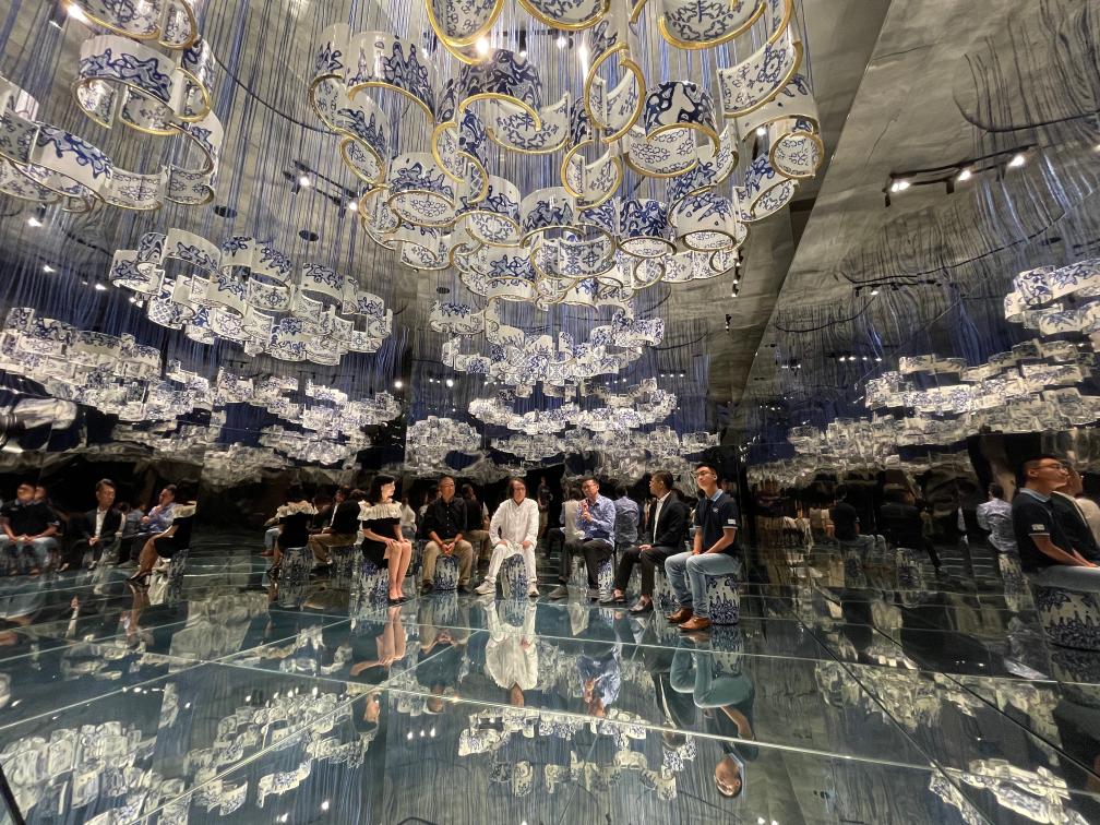 與會(huì)專家代表齊聚空間場(chǎng)景藝術(shù)《花的三重境》中,以絨瓷為天,以鏡面為席,暢談藝術(shù)、文化與奧林匹克的融合發(fā)展。