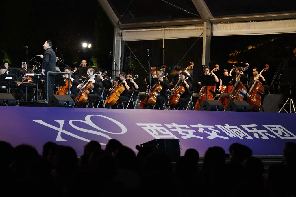 10日晚,2023西安交響樂團(tuán)大雁塔戶外公演在西安市大雁塔北廣場舉行。這場免費(fèi)戶外公演同時也通過網(wǎng)絡(luò)平臺進(jìn)行線上直播,讓廣大西安市民、游客和網(wǎng)友同享一場戶外大型古典音樂盛宴。