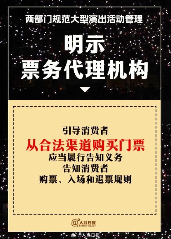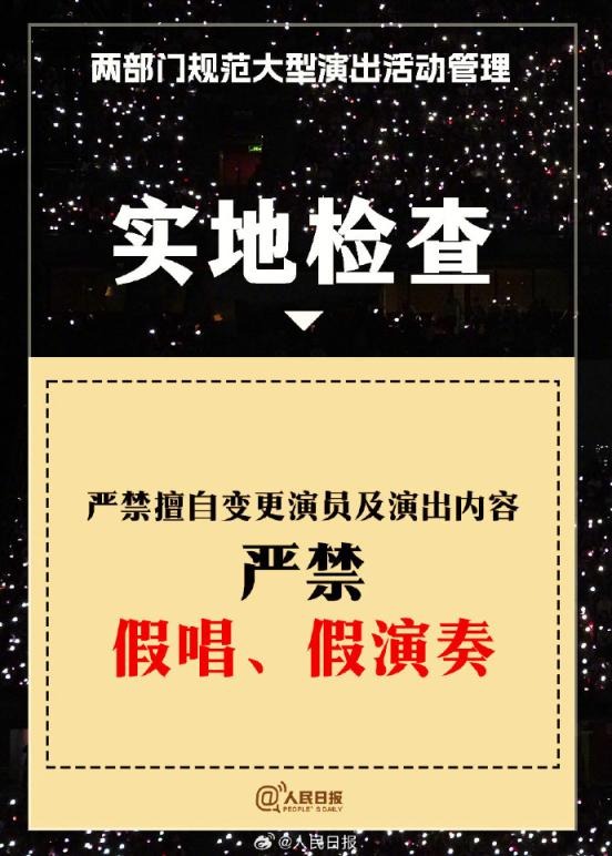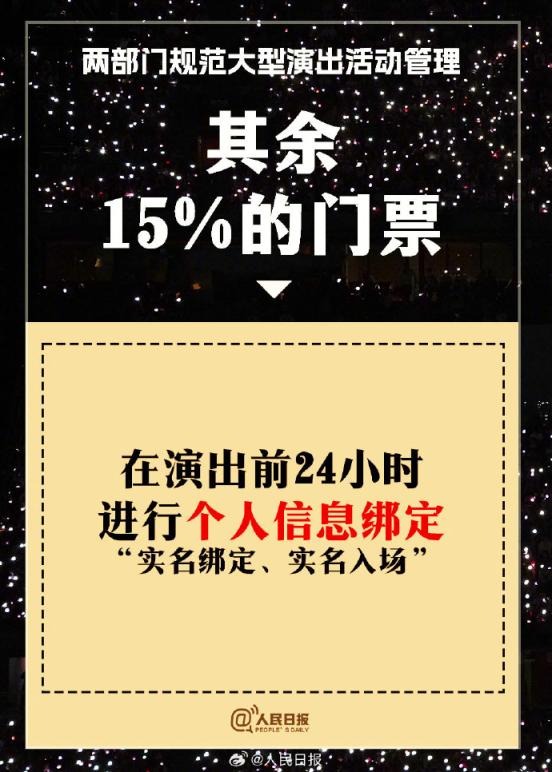 ?兩部門(mén)通知:①實(shí)名購(gòu)票、實(shí)名入場(chǎng)。5000人以上演唱會(huì)購(gòu)票人和入場(chǎng)人必須一致;②大型演出要設(shè)定梯次退票標(biāo)準(zhǔn);③公開(kāi)銷(xiāo)售門(mén)票不低于核準(zhǔn)觀眾數(shù)量的85%;④?chē)?yán)禁假唱、假演奏。更多↓↓↓詳戳,周知!