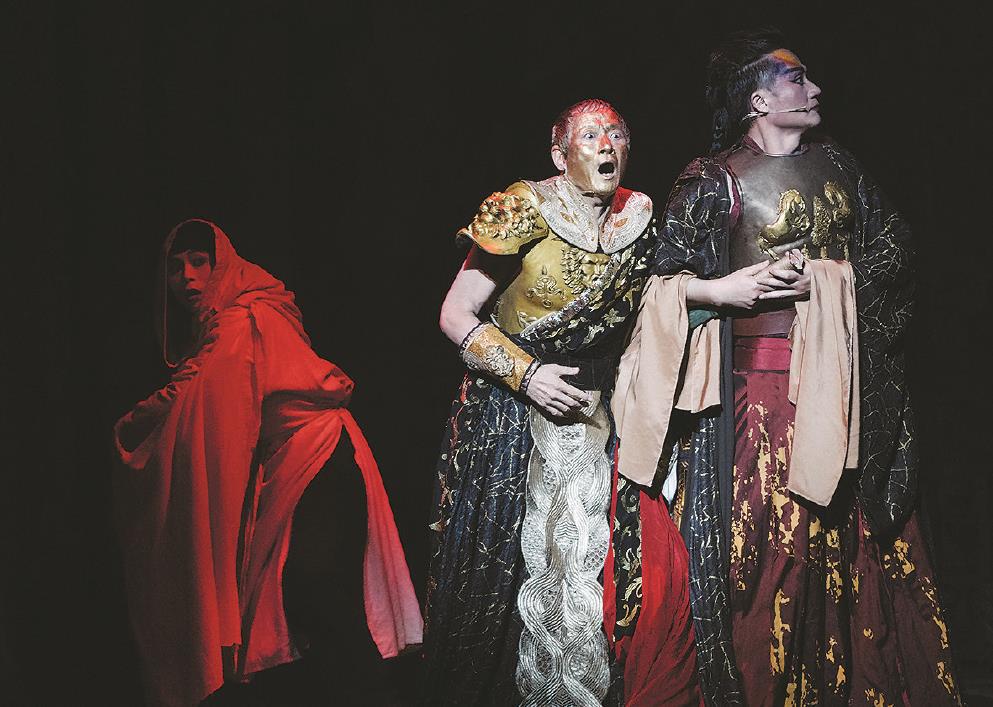 京昆新歌劇《凱撒》是根據(jù)經(jīng)典莎劇《凱撒大帝》進(jìn)行的當(dāng)代創(chuàng)作,滬臺(tái)藝術(shù)家吳興國(guó)、張軍首度合作。圖為劇照。 (演出方供圖)