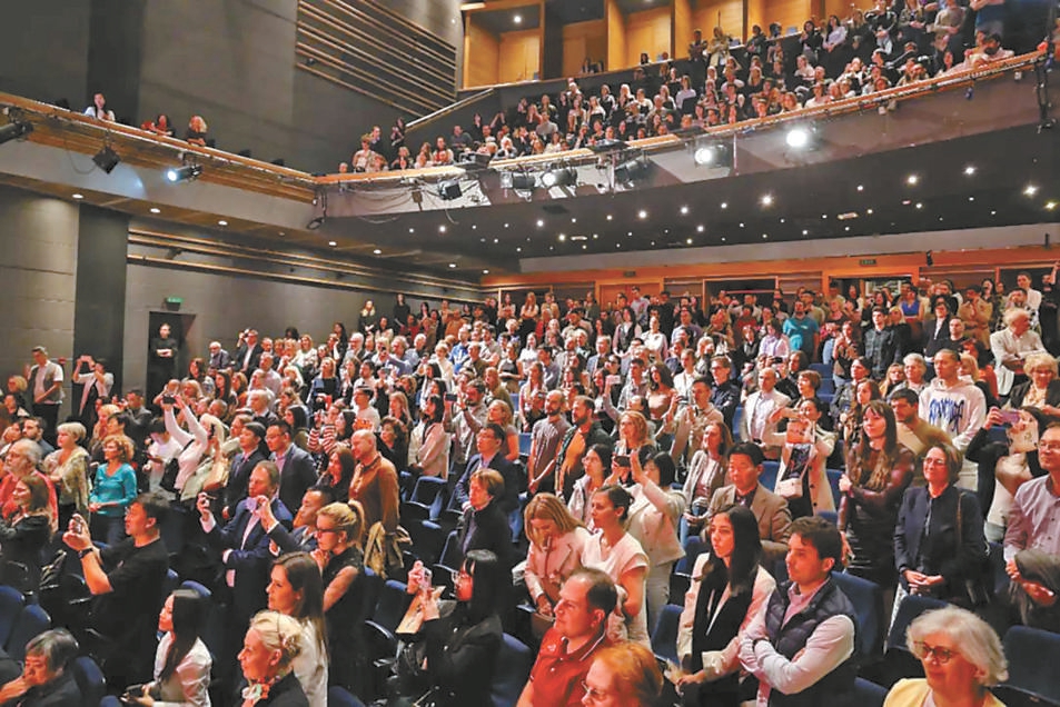 南斯拉夫劇院里,觀眾起立為《我們的荊軻》鼓掌。 李春光 攝