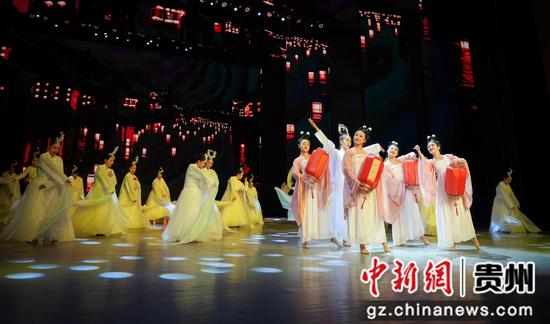 由多彩貴州風(fēng)藝術(shù)團(tuán)表演的開場舞《花好月圓夜》。貴州日?qǐng)?bào)天眼新聞?dòng)浾哙嵱顬t 攝