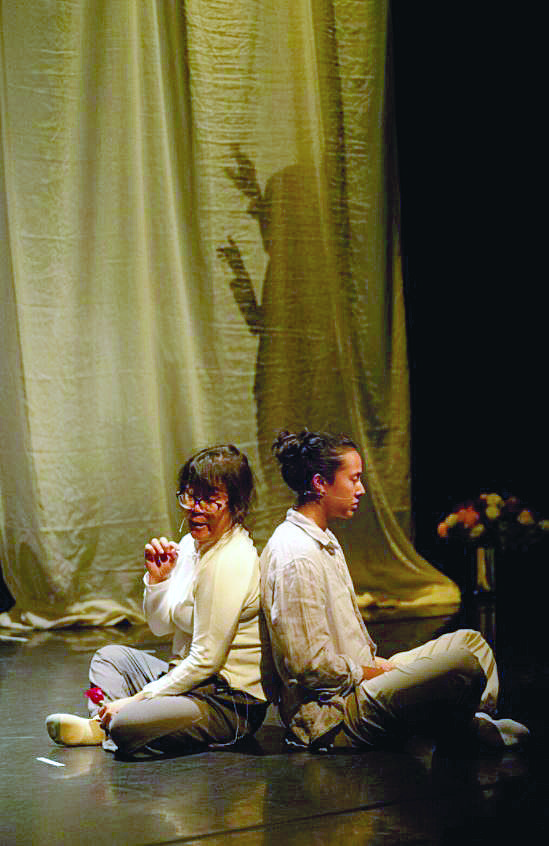 法魯克和余秀華合作詩(shī)歌舞蹈劇場(chǎng)作品《萬(wàn)噸月色》,試圖把詩(shī)里的“陰影”意象轉(zhuǎn)化成某種新鮮的舞臺(tái)象征——讓詩(shī)人在光與暗交錯(cuò)的空間里跳舞,在不同尺寸的“陰影”下舞蹈,表達(dá)不同生命階段對(duì)“陰影”的感受。(均受訪者供圖)