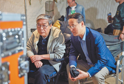 圖為《西北歲月》總導演董亞春(左)和總制片人王勇在工作中?!段鞅睔q月》片方供圖