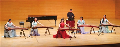 壓軸登場(chǎng)的古箏協(xié)奏曲《紫禁·瑤光》堪稱本場(chǎng)演出視聽亮點(diǎn)。吉煒領(lǐng)奏的團(tuán)隊(duì)以傳統(tǒng)箏搭配七聲弦制古箏及復(fù)原古樂器筑、軋箏,在王梓碩的打擊樂配合下,既展現(xiàn)宮廷音樂的風(fēng)雅,又以“玉之光采”頌揚(yáng)君子品格,古樸與創(chuàng)新的融合贏得全場(chǎng)持久掌聲。