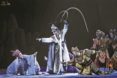 就筆者的理解,讓孫悟空、唐僧、白骨精、金蟾怪四個角色戲份更加平衡的做法,是為了能夠讓每位演員都獲得發(fā)揮的空間,這在戲曲表演傳統(tǒng)中本來不錯。而且?guī)孜欢际菢O好的演員,尤其金蟾怪在本劇中貢獻了一等一的表演。但是白骨精的形象、性格仍然不出傳統(tǒng),人物一登場,唱念上簡要地自報家門、交代背景就可以了,若鋪墊過多,唱詞顯得堆砌,無益于人物性格的塑造和展開。