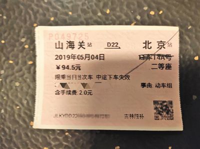 5月4日,五一假期返程高峰。新京報記者購買短途火車票,體驗(yàn)“買短乘長”,進(jìn)站后只需補(bǔ)票并繳納2元手續(xù)費(fèi)后,即可乘往終點(diǎn)。律師表示,旅客自購買車票后,事實(shí)上就已與鐵路部門形成了運(yùn)輸合同關(guān)系,因?yàn)殍F路部門的原因,導(dǎo)致旅客沒有按時乘坐火車,系鐵路部門違反了合同的約定,應(yīng)當(dāng)承擔(dān)違約責(zé)任。