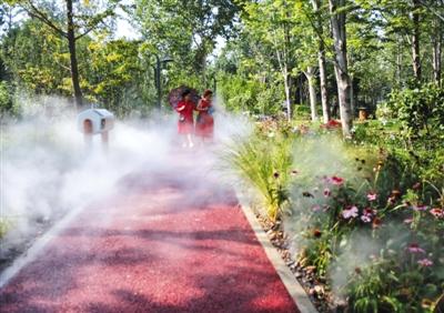 昨(3號)日,安德城市森林公園內(nèi)設(shè)置多處噴霧裝置。記者 王貴彬 攝