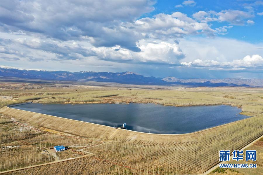 這是4月19日拍攝的阿勒泰市中水庫(無人機照片)。近年來,新疆阿勒泰市利用經(jīng)污水處理廠處理達標后的中水,灌溉建在戈壁灘上的苗圃基地,形成良性循環(huán),助力綠化工程,改善生態(tài)環(huán)境。從2017年至今,阿勒泰市中水回用環(huán)境治理示范園已為當?shù)鼐G化工程提供40萬株樹苗,實現(xiàn)5000畝荒山綠化。 新華社記者 丁磊 攝