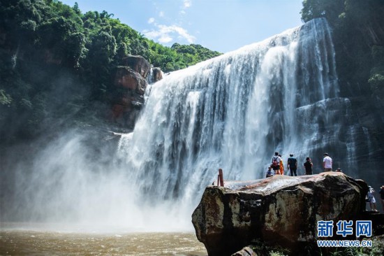 6月15日,游客在赤水大瀑布景區(qū)觀光游玩。新華社記者 陶亮 攝