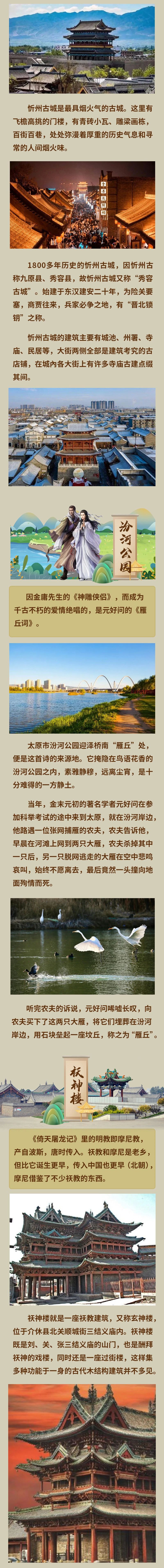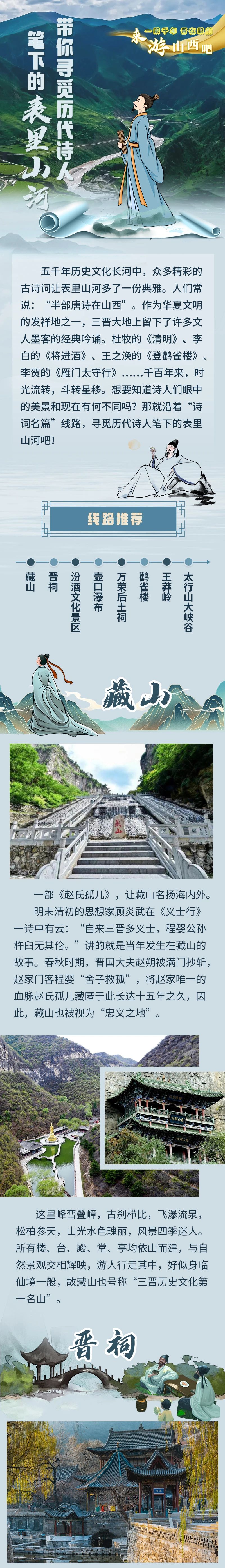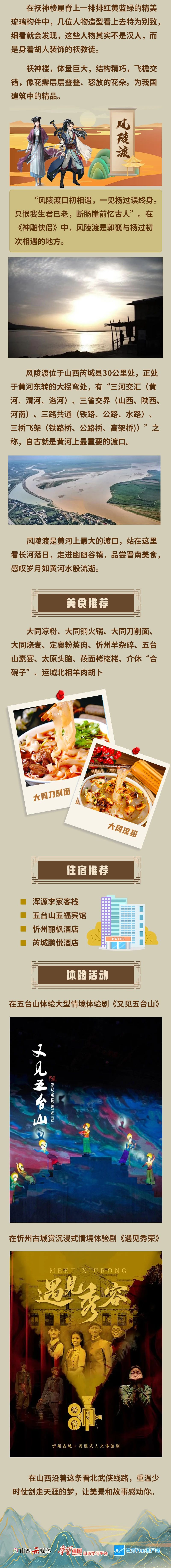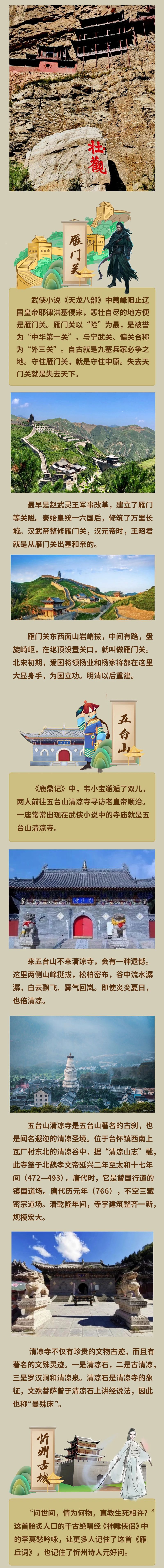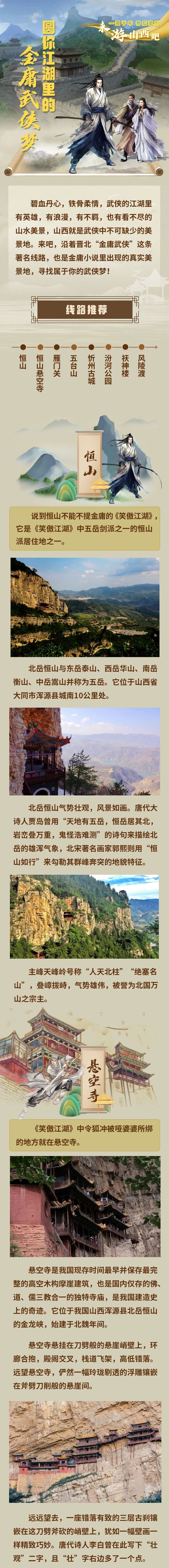2023山西國(guó)風(fēng)文化月已經(jīng)啟動(dòng),啟動(dòng)儀式上發(fā)布的“金庸武俠線路”“詩(shī)詞名篇線路”“國(guó)家寶藏線路”三條國(guó)風(fēng)文化線路備受關(guān)注。看武俠、讀詩(shī)詞、賞國(guó)寶,國(guó)風(fēng)山西到底怎么玩兒?三張長(zhǎng)圖帶你走一遍!