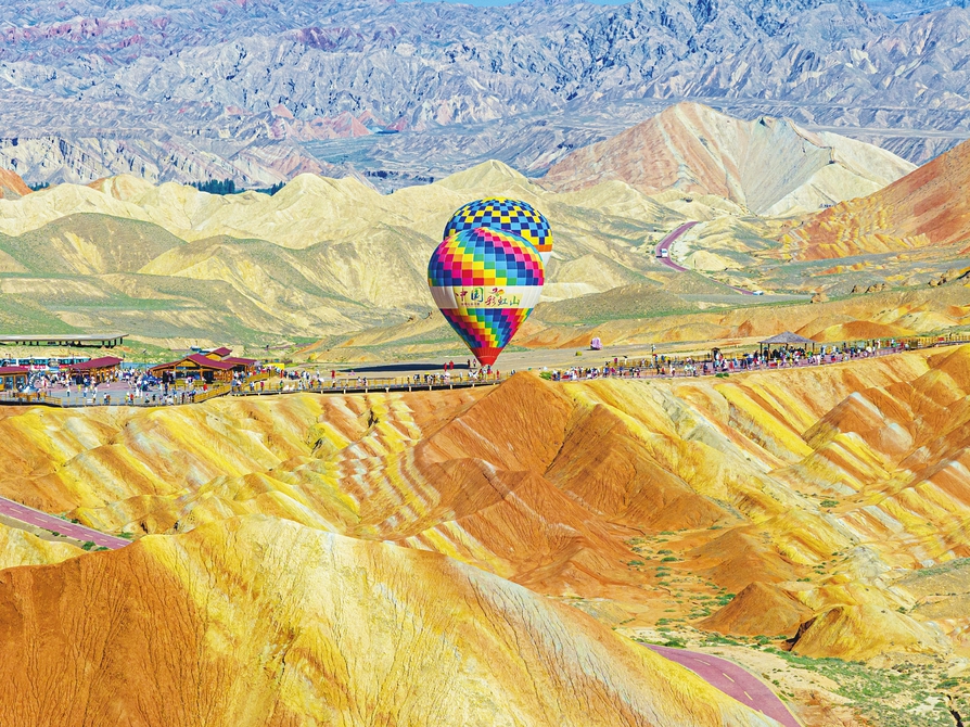 這是8月7日在張掖七彩丹霞景區(qū)拍攝的丹霞景觀(無人機(jī)照片)。位于甘肅省張掖市境內(nèi)的張掖七彩丹霞景區(qū)屬張掖國家地質(zhì)公園,是罕見的丹霞地貌與彩色丘陵景觀復(fù)合區(qū)。進(jìn)入8月以來,七彩丹霞景區(qū)日均游客數(shù)量突破3.5萬人次。