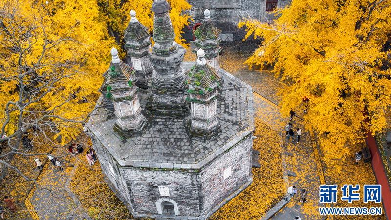 近日,佇立在湖北襄陽廣德寺內(nèi)的銀杏古樹迎來最佳觀賞期,吸引了眾多游客前來拍照打卡。 楊瀟攝 新華網(wǎng)發(fā)