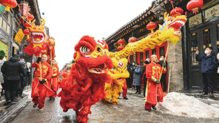 嗨冰雪,覓美食,逛冬景……在大同,除了人們熟知的“夏清涼”,還有“冬康養(yǎng)”。流光溢彩耀平城、魅力冰雪慶豐年等地方特色濃郁、群眾參與度高的文化活動(dòng),為人民傾情呈現(xiàn)趣味冰雪和熱鬧年俗、經(jīng)典美食與北國(guó)風(fēng)情有機(jī)串聯(lián)的文旅盛宴。如果是春節(jié)期間來到古城,還會(huì)與具有獨(dú)特民俗風(fēng)格的演藝活動(dòng)不期而遇。鄉(xiāng)土氣息十足的街頭吆喝,民俗社火演藝,扭秧歌、劃旱船、背鐵棍、南北獅爭(zhēng)霸賽、山西民歌、八音會(huì)、晉劇表演等,讓人目不暇接。正月里的威風(fēng)鑼鼓、秧歌、旱船等傳統(tǒng)民俗節(jié)目,讓游客大飽眼福。