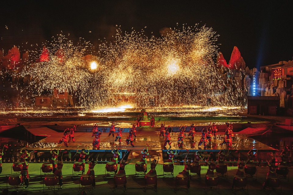 2月18日夜晚,晉城城區(qū)司徒小鎮(zhèn)的《千年鐵魂》演出現(xiàn)場,近千人的劇場座無虛席,融合在璀璨燈光舞美、民俗演繹故事里的“打鐵花”表演恢宏壯闊,令八方來客看得如癡如醉。此時的華誼兄弟星劇場同樣人潮涌動。大型沉浸式融合秀《重逢晉城》,通過大型特效舞臺互動裝置、VR和AR虛擬現(xiàn)實等技術手段,融匯話劇、歌舞、武術、威亞等互動演藝,實景再現(xiàn)晉城6大歷史文化場景,讓每位觀眾“穿越時空、一夢千年”,直呼震撼、過癮。