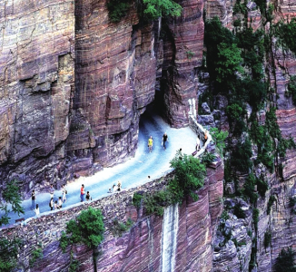 在太行山脈的晉豫交界帶,是我國第一階梯和第二階梯的分界線。在山脈的東西兩側,地勢險要,垂直落差極大,形成了一座座筆直陡峭的懸崖絕壁,也構造了大自然鬼斧神工的絕佳壯美奇景,卻也因此地形阻礙了大山居民的出行之路,千百年來的大山人民過著與世隔絕的生活。到了20世紀五六十年代,大山的居民們以愚公移山的精神,克服重重苦難,在懸崖峭壁上一錘一斧開出了一條條連接大山與外界的“掛壁公路”。