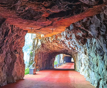 接下來,還可以去山西平順縣境內的井底掛壁公路,這條公路全長一千五百米,完全懸在半山腰,跟山頂和溝底都有上百米垂直距離。但最驚奇的是,在隔著百米深淵的公路對面,修有樓梯,其近乎直立且無扶手,是早前居民出山必經之路。井底村是民俗古村落,因四周絕壁環(huán)抱,其形如井,故而得名,這里相比郭亮村,少了些許商業(yè)氣息,更加安靜純樸。前面的兩處掛壁公路都不適宜自駕旅游,但這條井底掛壁公路卻是最佳的自駕游去處,公路為雙向兩車道,路況較好,可以在路邊停車拍照打卡,欣賞美景。
