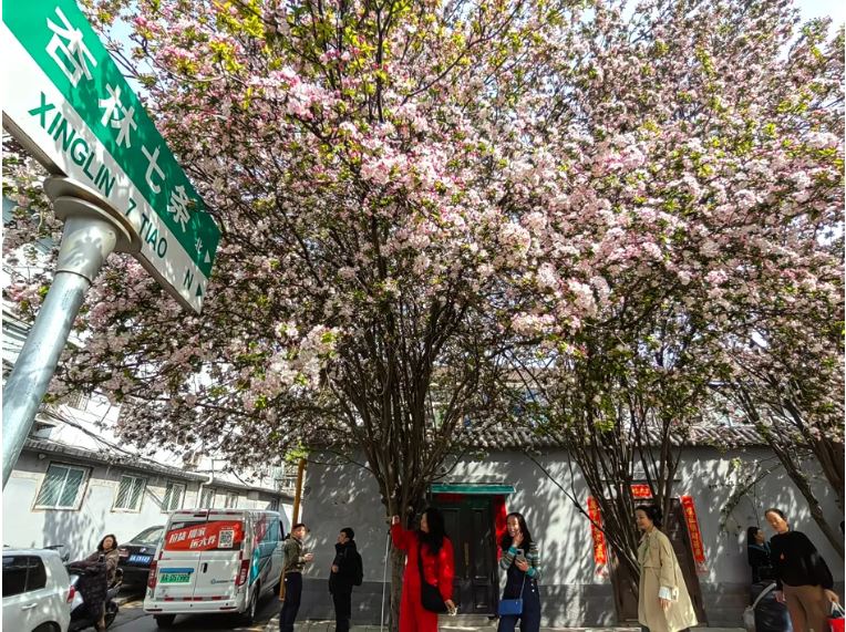 山西日報新媒體記者吳曉慶報道 清明時節(jié),一場綿綿春雨過后,太原杏林七條盛放的海棠讓人們邂逅了一場美不勝收的花海。粉白相間的海棠、富有年代感的木門與灰色的磚墻,優(yōu)雅中帶著古典,古典中又透著浪漫的氣息,清明小長假,許多市民身著艷麗的服裝,前來這條位于桃園三巷附近的“網(wǎng)紅”小巷打卡留念。