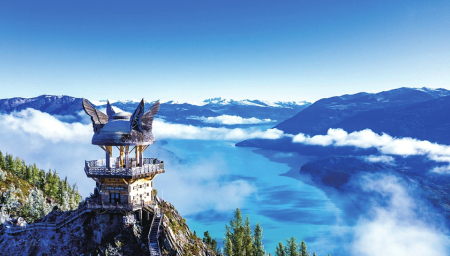 喀納斯湖中心的變色湖是一處特別的景觀,它是天地間的一面鏡子,隨著周圍四季風(fēng)景變換而呈現(xiàn)不同顏色。五月還是青色,六月則轉(zhuǎn)藍(lán)綠,七月乳白色加入,八月墨綠,九月、十月如翡翠一樣色彩斑斕,十一月冰雪封湖一片雪白,至來年四五月又是一個(gè)輪回。但八月初,喀納斯湖景區(qū)海拔1400米以上便可能降雪,雪期會(huì)長至下一年六月,因此,游客要想賞喀納斯的美,六月和七月是最佳旅游時(shí)間。有許多游客是穿羽絨服而來,拍照時(shí)脫下外套,潔白的裙子映在湖光山色間,說一句仙女之姿,絲毫不為過。