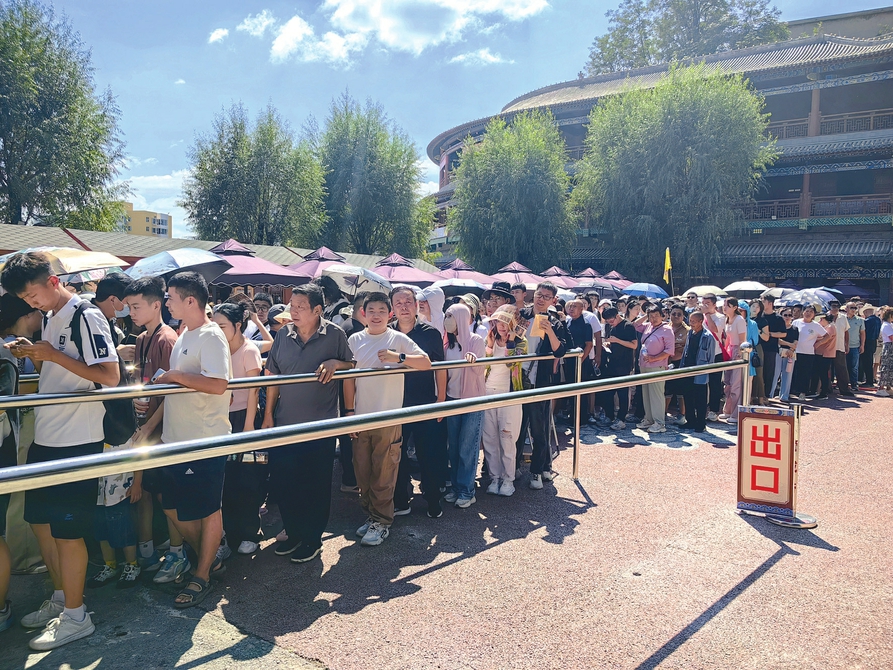 中秋小長假期間,隰縣小西天景區(qū)游客數(shù)量暴漲,圖為游客們有序排隊(duì)。杜磊攝