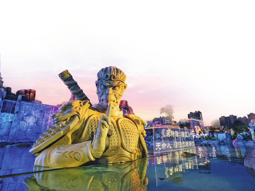 大寶船舞臺上的表演、飛流直下的疊水瀑布、5D裸眼大屏、蓮花池里的烏篷船,自然美景與各種元素相融,給這里帶來了沉浸式文旅消費新場景;