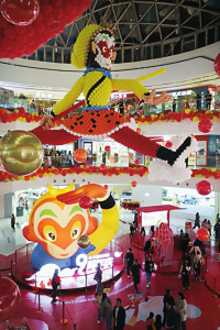 1.在解放路萬達廣場內,兩個巨大的1961年版《大鬧天宮》美猴王造型吸引眾多市民打卡留念。