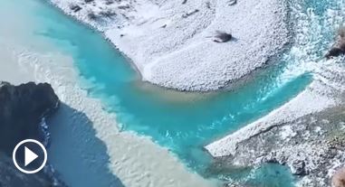 新疆昭蘇,阿合牙孜河和特克斯河清濁相匯,涇渭分明。