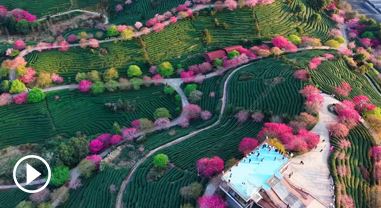 近日,福建漳州臺(tái)品櫻花園的櫻花悄然盛放,漫山遍野的櫻花與層層疊疊的茶山交相輝映,粉紅花海點(diǎn)綴翠綠茶壟,構(gòu)成一幅生機(jī)勃勃的春日畫(huà)卷。
