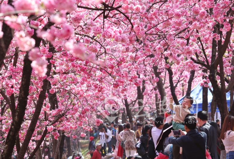 3月13日,昆明圓通動(dòng)物園人潮涌動(dòng),數(shù)千株櫻花和海棠進(jìn)入盛花期,吸引大批游客前來(lái)賞花觀景。