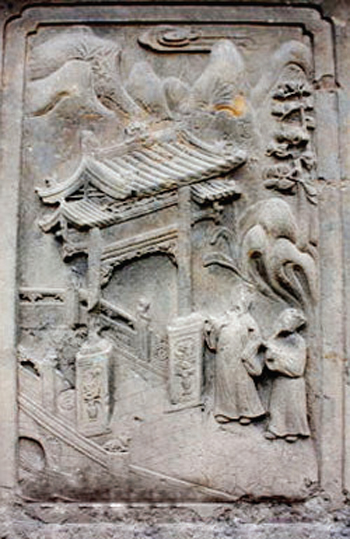 配坊實(shí)際上是一座功名石牌坊,上面刊載著武訪疇一家四代人的姓名及朝廷贈(zèng)封的官爵,咸豐六年(1856)由武訪疇修建。這座石雕牌坊與其它牌坊最大的區(qū)別就是沒有題刻坊名,因此只能稱之為配坊。坐北向南,為四柱三間三樓單檐歇山頂結(jié)構(gòu),牌樓高8米,寬12米,坊體坐落在近1米高的長(zhǎng)方形臺(tái)基上,立柱仍然采用夾柱石固定。坊頂覆蓋青瓦,正脊飾石雕貔貅裝飾,飛檐翹角,明樓檐下為“圣旨”牌,當(dāng)心間設(shè)兩層小字板,第一層題刻:“贈(zèng)資政大夫曾祖父廷桂,贈(zèng)夫人曾祖母李氏;誥贈(zèng)資政大夫祖父秉壁,誥贈(zèng)夫人祖母吳氏;誥贈(zèng)資政大夫父烈,誥封夫人母朱氏。陜西分巡延榆綏兵備道、加四級(jí)武訪疇謹(jǐn)建?!钡诙宇}刻“大清咸豐六年歲次丙辰仲夏上院榖旦”。武訪疇借建坊要弘揚(yáng)祖輩陰德,而祖輩的姓氏大名又不能題刻在母親的節(jié)孝牌坊上,所以,他必須另建一坊才能完整地表達(dá)心愿。實(shí)際上,這就是建造配坊的真正目的。也正因此在配坊題刻“龍光錫寵”、“鳳詔褒榮”、“克成先志”、“重裕后昆”等。