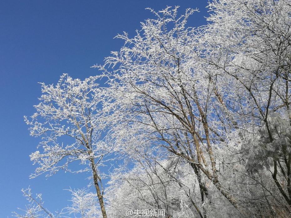 受較強冷空氣影響,秦嶺腹地涼風埡山頂,出現(xiàn)大面積霧凇景觀。玉樹瓊枝,晶瑩剔透,讓涼風埡山頂變得像童話世界一般,美不勝收。 央視記者王志杰 圖片來源:央視新聞微博