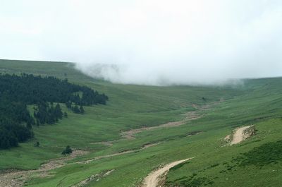 荷葉坪因其山體像荷葉而得名。位居寧武、五寨、岢嵐三縣交界處,在管涔山上與蘆芽山、馬倫草原成三足鼎立的態(tài)勢(shì)。最高處海拔2784米,比蘆芽山主峰還高。為晉西北最高峰,電視差轉(zhuǎn)臺(tái)4844就建在主峰。整個(gè)山體屬花崗巖結(jié)構(gòu),但寬廣的頂部覆蓋著厚厚的土層,經(jīng)過(guò)多年的雨雪滋養(yǎng),特別適合林木和牧草及中藥材生長(zhǎng)。每到夏日,綠草如茵,鮮花盛開(kāi),空氣清新。這時(shí)周邊三縣的村民就將牛馬趕上坪臺(tái),做好記號(hào),不再管了,深秋時(shí)再去找回。