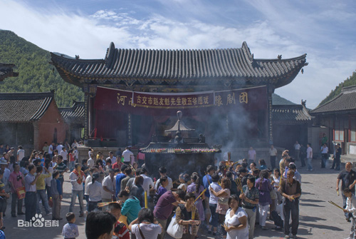 五爺廟里殿內(nèi)供奉的五爺是廣濟(jì)龍王文殊菩薩的尊稱,也是五臺(tái)山五頂文殊菩薩的化身,因而,這里是整個(gè)五臺(tái)山香火最盛的寺廟。而事實(shí)上,應(yīng)該說(shuō)五爺其實(shí)就是文殊菩薩在臺(tái)懷本土化,世俗化的產(chǎn)物,它承擔(dān)起了民間俗神的職能,寄托著當(dāng)?shù)匕傩掌砼物L(fēng)調(diào)雨順、平安吉祥的愿望。也許正是因?yàn)槲鍫敱绕鹌渌鞔笏略豪锴f嚴(yán)肅穆的菩薩們更親近群眾,更符合急功近利的眾生心愿的緣故吧,小小的五爺廟,在善男信女們的心目中,它幾乎成了有求必應(yīng)的象征,上五臺(tái)山燒香的人大部分都是沖著五爺廟去的。在群眾心目中,他們不懂什么佛理,甚至不知道文殊菩薩,但只要一說(shuō)五爺廟,則遠(yuǎn)近聞名,幾乎成了五臺(tái)山的一張名片。
