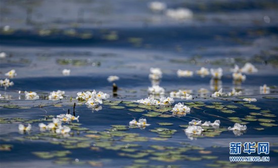 在洱海中開放的海菜花(5月31日攝)。在云南大理洱海,被視為“水質風向標”的海菜花一度難覓蹤跡。2016年底,云南省開啟搶救式保護工作,全面打響洱海治理攻堅戰(zhàn)。2019年洱海全湖水質繼2018年后再次實現(xiàn)7個月Ⅱ類,主要水質指標變化趨勢總體向好。如今海菜花又在清澈的湖水中隨波蕩漾。 (新華社記者 江文耀 攝)