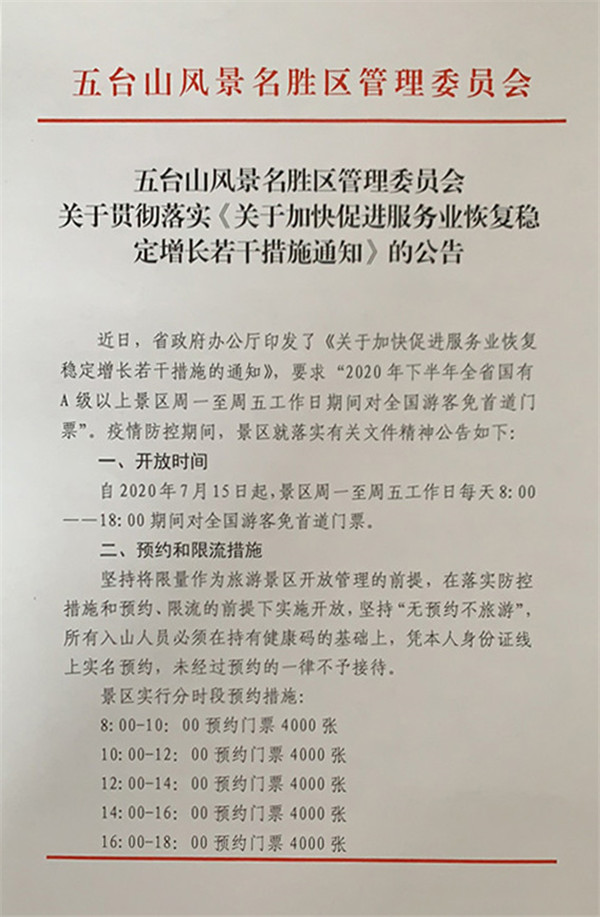五臺(tái)山風(fēng)景名勝區(qū)管理委員會(huì)關(guān)于貫徹落實(shí)《關(guān)于加快促進(jìn)服務(wù)業(yè)恢復(fù)穩(wěn)定增長若干措施通知》的公告