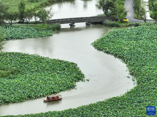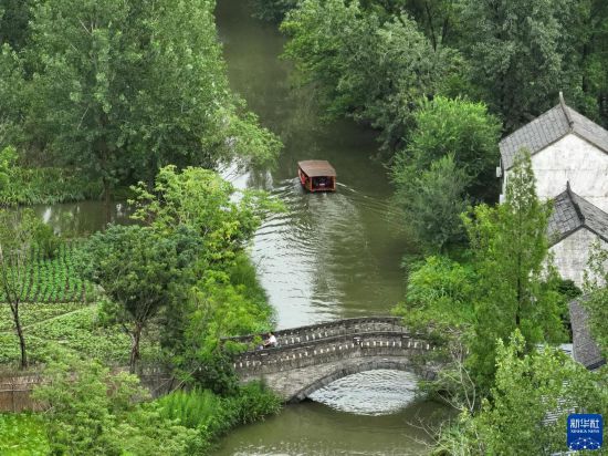 7月11日,游人乘船游覽穆溝古村(無人機(jī)照片)。 位于江蘇阜寧的穆溝古村是座具有600多年歷史的自然村落,村域面積4000畝左右,村莊古樸風(fēng)貌保存較好。2020年底,當(dāng)?shù)貨Q定按照“修舊如舊”的原則對穆溝古村實施改造,既讓農(nóng)民的居住條件得到改善,又使古村整體形象得到升級;同時,古村引入多種傳統(tǒng)業(yè)態(tài)和現(xiàn)代文創(chuàng)產(chǎn)品,吸引眾多游客前來游玩體驗。 新華社記者 季春鵬 攝