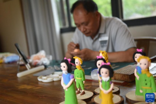 7月11日,江蘇省級非物質(zhì)文化遺產(chǎn)“阜寧面塑”傳承人周必良在穆溝古村進(jìn)行創(chuàng)作。 位于江蘇阜寧的穆溝古村是座具有600多年歷史的自然村落,村域面積4000畝左右,村莊古樸風(fēng)貌保存較好。2020年底,當(dāng)?shù)貨Q定按照“修舊如舊”的原則對穆溝古村實施改造,既讓農(nóng)民的居住條件得到改善,又使古村整體形象得到升級;同時,古村引入多種傳統(tǒng)業(yè)態(tài)和現(xiàn)代文創(chuàng)產(chǎn)品,吸引眾多游客前來游玩體驗。 新華社記者 黃曉勇 攝