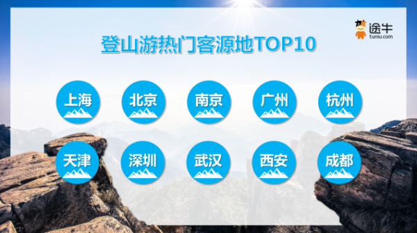 途牛截至目前最新預(yù)訂數(shù)據(jù)顯示,2023年以來,選擇登山游相關(guān)旅游產(chǎn)品的用戶出游人次占比達(dá)29%,是途牛用戶最熱衷的出游主題之一。其中,上海、北京、南京、廣州、杭州、天津、深圳、武漢、西安、成都等地用戶對(duì)登山游擁有更高的熱情。