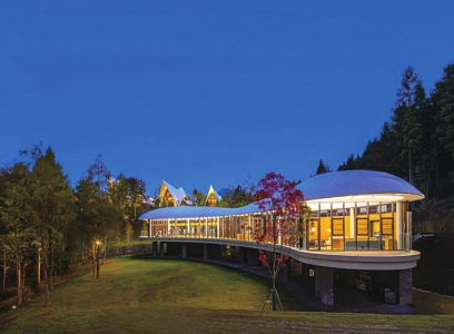 夜色朦朧中,一幢幢造型別致的建筑閃現(xiàn)眼前,或尖頂,或圓頂,點(diǎn)綴山間,乍看之下,如同天幕下支撐起一個(gè)個(gè)巨大帳篷。這里就是度假區(qū)的核心板塊,黃山關(guān)麓帳篷客酒店。從山下到山頂,別墅或獨(dú)棟,或聯(lián)排,根據(jù)地形進(jìn)行設(shè)計(jì),就像從山林中“生長(zhǎng)”出來(lái),一條蜿蜒曲折的小路,將它們相互連通。32套別墅以文房四寶中的墨海、紫豪、松煙、云藍(lán)命名,雅致中凸顯出一份徽州文化的情調(diào)。