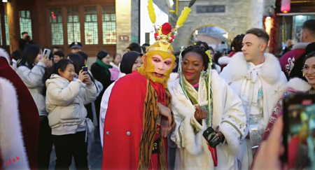 2024年12月4日,中國(guó)的傳統(tǒng)節(jié)日春節(jié)正式列入聯(lián)合國(guó)教科文組織《人類非物質(zhì)文化遺產(chǎn)代表作名錄》,標(biāo)志著春節(jié)這一中國(guó)文化瑰寶走向全球,成為全人類共同的文化遺產(chǎn)。本次活動(dòng)中,現(xiàn)場(chǎng)也多了許多身著中華傳統(tǒng)服飾的“洋面孔”。這些來自世界各地的外籍友人身著漢服,記錄在忻州古城的新奇體驗(yàn),從國(guó)際視角感受山西年俗文化的獨(dú)特魅力,進(jìn)一步推動(dòng)了“歡樂中國(guó)年地道山西味”這一山西文旅IP品牌國(guó)際化傳播。
