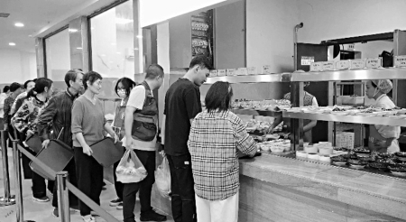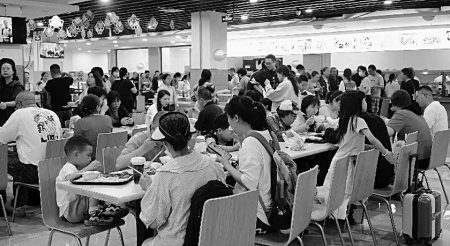 眾多顧客前來體驗(yàn)食堂餐飲。