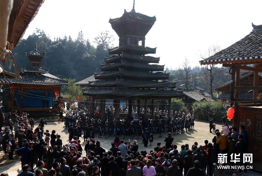 2月17日,貴州省黔東南苗族侗族自治州黎平縣巖洞鎮(zhèn)述洞村開展一年一度的“鼓樓之宗”活動。侗族老人在當(dāng)?shù)刈罟爬系墓臉恰冀ㄓ诿鞔莫?dú)柱鼓樓講述侗族遷徙歷程,告誡大家要敬老尊賢、和睦相處、團(tuán)結(jié)友善,侗族青年男女身著節(jié)日盛裝圍著鼓樓一邊踩歌堂,一邊唱遷徙古歌,之后在鼓樓旁進(jìn)行“侗族大歌”對唱,感懷族群遷徙的歷史,傳承傳統(tǒng)文化。新華社發(fā)(楊代富 攝)