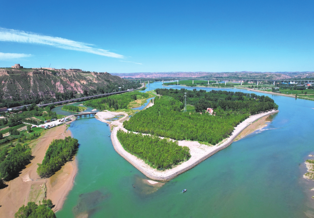 “一灘藏漢史,千年有回聲?!背跻娔锬餅?,只見它四面環(huán)水,如一粒翡翠鑲嵌于濁流之中。人說這里是塞上少有的綠洲,站在灘上,可聞晉、陜、蒙三省的雞鳴。面積僅0.16平方公里,卻承載著兩千多年的傳奇。