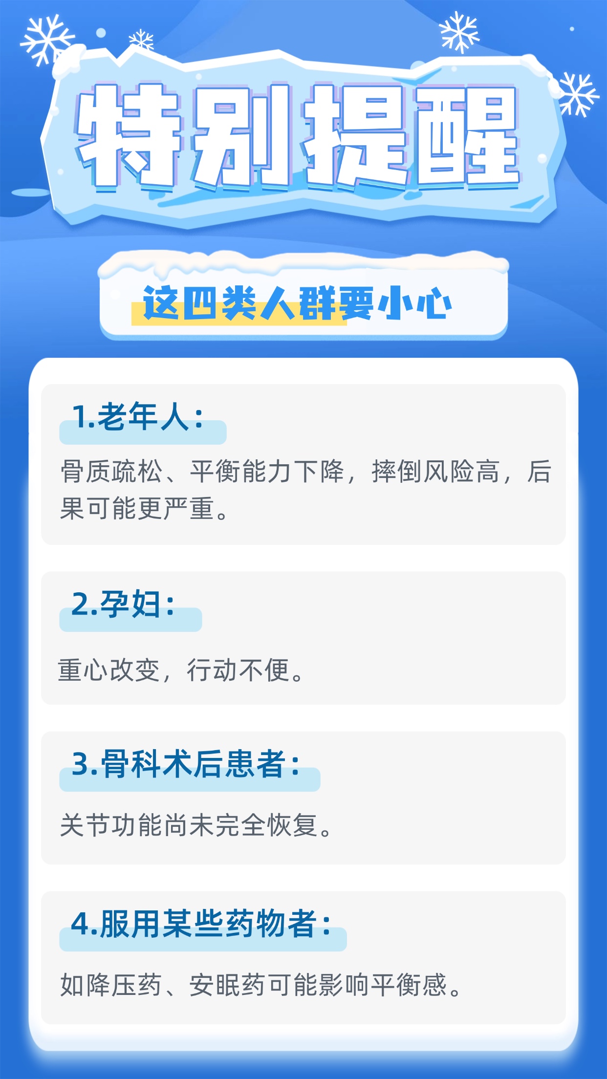 近日寒潮來襲,雨雪低溫導致路面濕滑,極易引發(fā)摔跤。每年冬雪季,因路滑摔倒導致骨折、扭傷的患者都會明顯增多。人民網(wǎng)《健康“醫(yī)”點通》欄目采訪了河南省職工醫(yī)院中醫(yī)科·中西醫(yī)結合科主任醫(yī)師張恒,總結了一份“雪天防摔秘籍”,助您安穩(wěn)過冬!