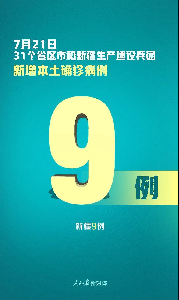 7月21日0—24時(shí),31個(gè)?。ㄗ灾螀^(qū)、直轄市)和新疆生產(chǎn)建設(shè)兵團(tuán)報(bào)告新增確診病例14例,其中境外輸入病例5例(上海2例,廣東2例,云南1例),本土病例9例(均在新疆);無新增死亡病例;無新增疑似病例。