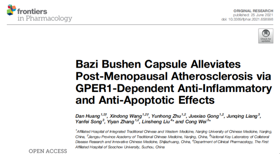 近日,南京中醫(yī)藥大學(xué)附屬中西醫(yī)結(jié)合醫(yī)院黃丹博士關(guān)于“八子補(bǔ)腎膠囊通過抗炎和抗凋亡作用減輕絕經(jīng)后粥樣動(dòng)脈硬化”研究,6月25日發(fā)表在國(guó)際學(xué)術(shù)期刊《Frontiers in Psychology》上(影響因子為5.810)。