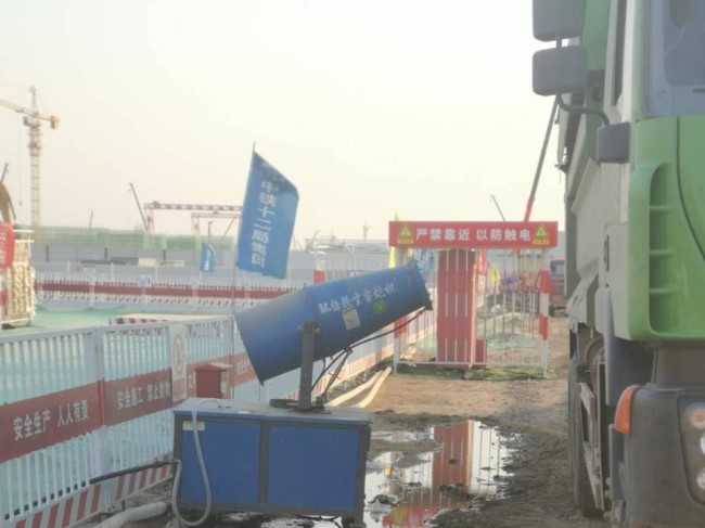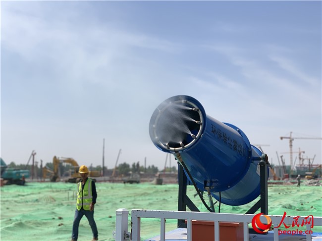 環(huán)保除塵霧炮機(jī)在施工現(xiàn)場(chǎng)作業(yè)。人民網(wǎng)5月7日攝