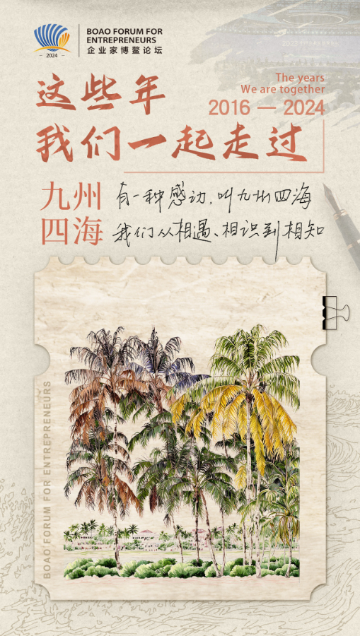 2024年是企業(yè)家博鰲論壇舉辦第九年。九年來,企業(yè)家因?yàn)椤安棥倍嗑勰虾V疄I。凝聚共識,匯聚信心;共商合作,共謀發(fā)展。在各界嘉賓的無私澆灌和培育下,歷經(jīng)多年積淀,企業(yè)家博鰲論壇已逐漸成長成為一棵枝繁葉茂、亭亭如蓋的大樹。每一次吐蕊,都充滿深情;每一枚掛果,都飽含感恩。