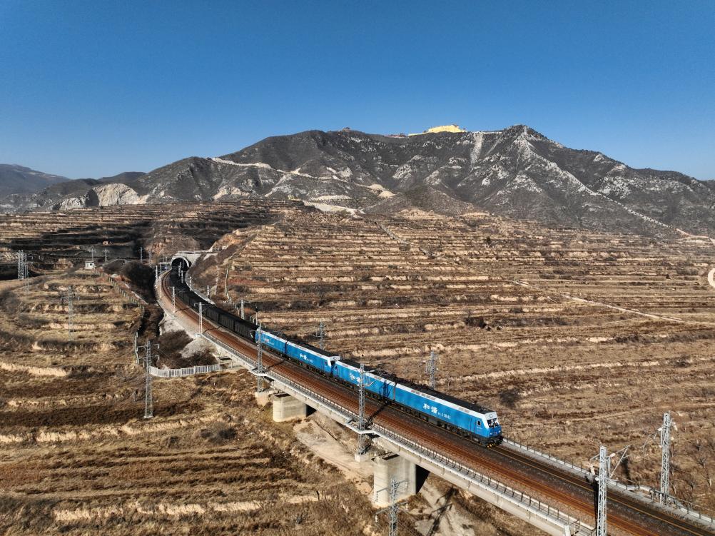 春運期間,重載列車在瓦日線上馳騁,為華東沿海港口及能源需求腹地運送煤炭等能源物資。 新華社發(fā)(張睿攝)