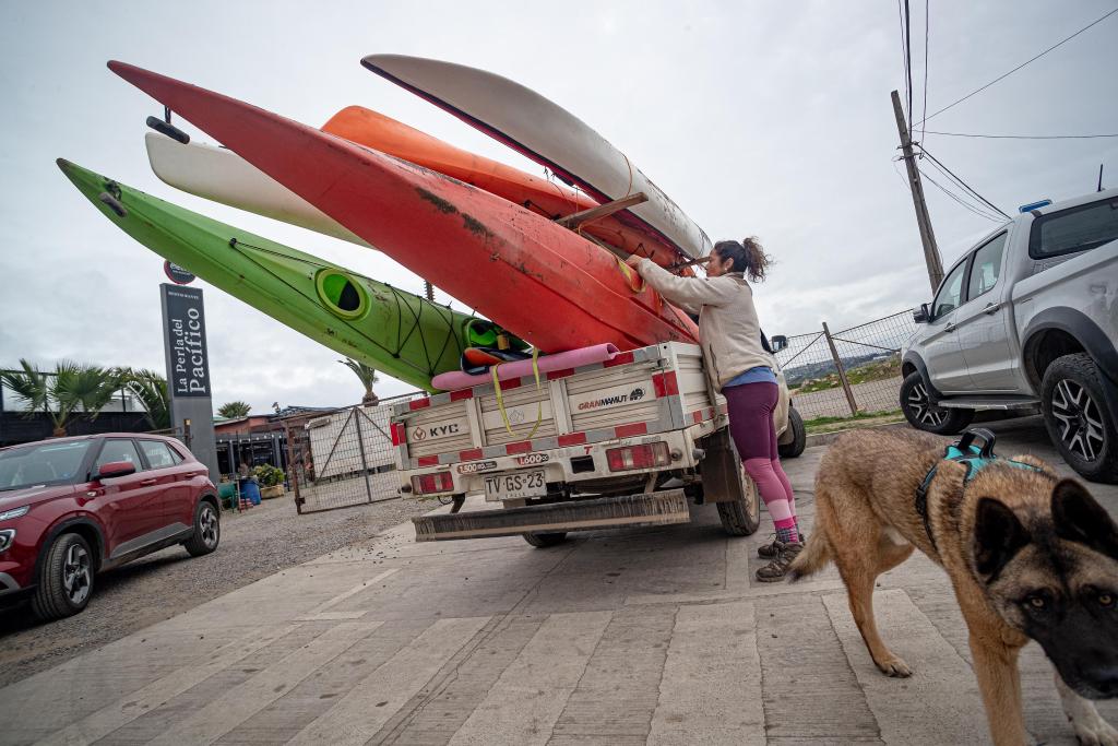7月30日,在智利瓦爾帕萊索大區(qū)康孔市,一名女士準備向安全地帶撤離。新華社發(fā)